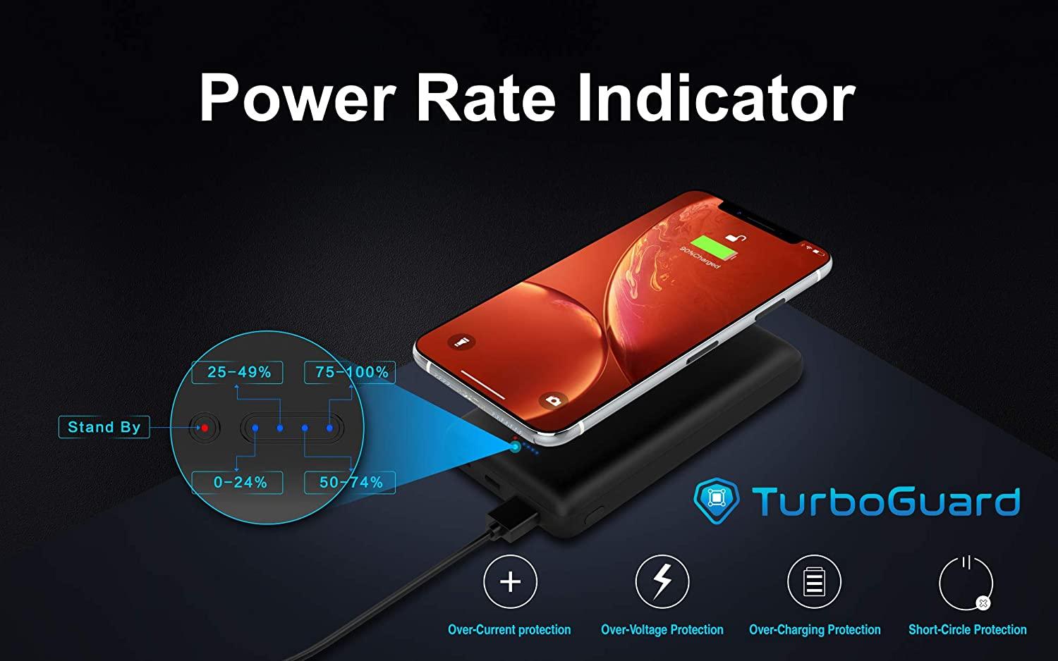 Multiple Output Charging: 3 ports (18W USB-A, 18W USB-C, 10W Wireless charging pad) ensure power for your all your devices such phones and tablets.