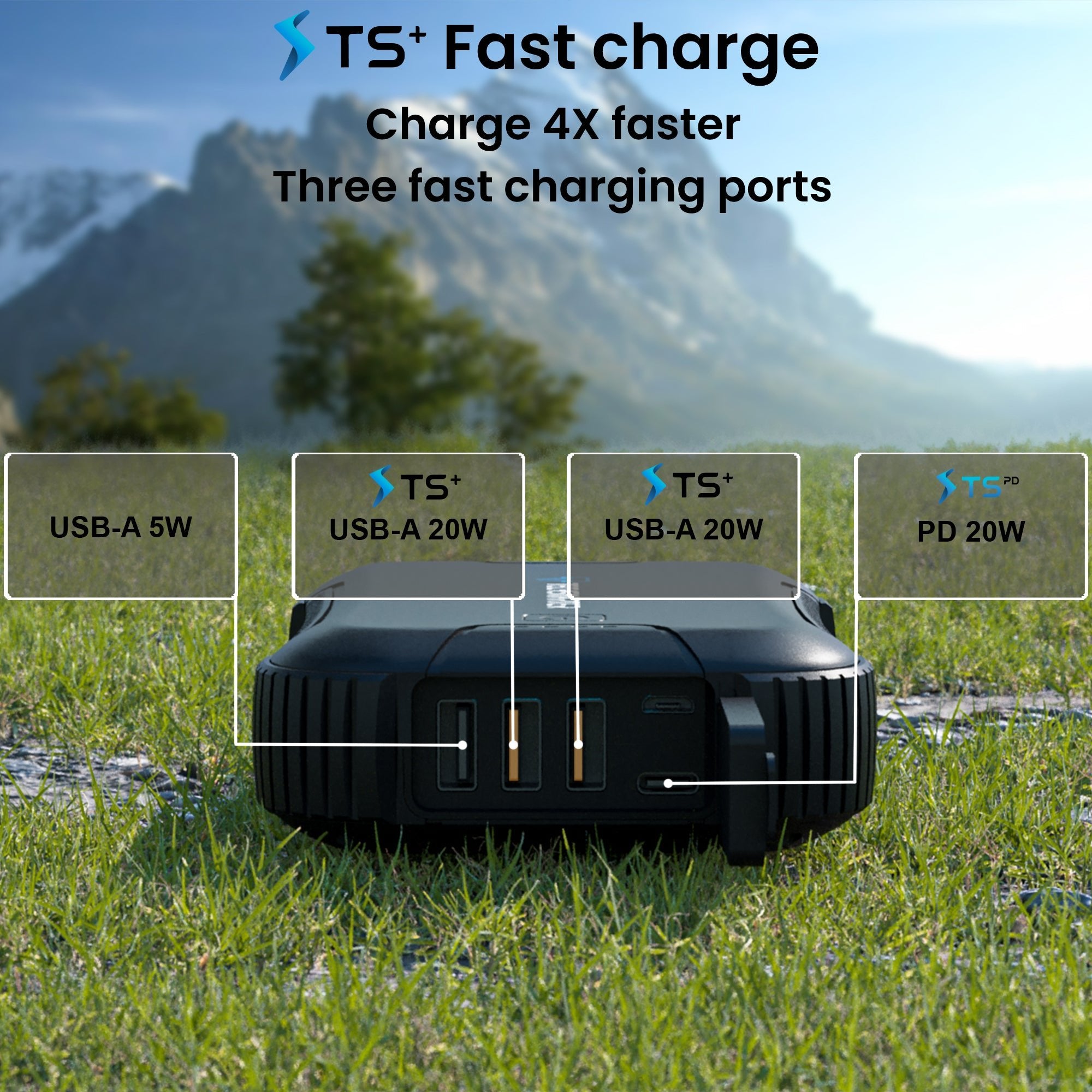 - Two 20W TS+ Fast Charge USB Ports: (5V/3A, 9V/2.2A,12V/1.67A)